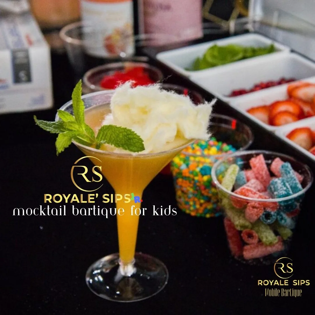 Welcome to Royale Sips Jr., the ultimate mocktail bar experience created just for children and teens! Designed with elegance, fun, and imagination in mind, Royale Sips Jr. brings the same royal flair of our signature bar — just without the alcohol.
